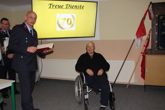 Am 23.November 1937 wurde der Kamerad Oberbrandmeister Henning aus Altersgründen vom Herrn Amtsvorsteher und dem Kreiswehrführer verabschiedet.