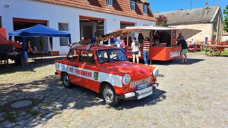 Ein Gaudium war die Teilnahme auch für die Schönhauser. Mit ihrem Spritzenwagen von 1899/1900 – den sie einst in desolatem Zustand vom Feuerwehrmuseum überlassen bekamen – schafften sie gleich zwei Platzierungen. „So ein Wettbewerb macht einfach Spaß“, fand Wehrleiter Karl-Heinz Pick, dem die Löschübung noch ins Gesicht geschrieben ist: „Das Ziehen ist schon anstrengend, aber auch das Pumpen. Hier haben wir ja nur einen Kanister vom Sockel geholt, früher haben sie damit richtige Brände gelöscht...“